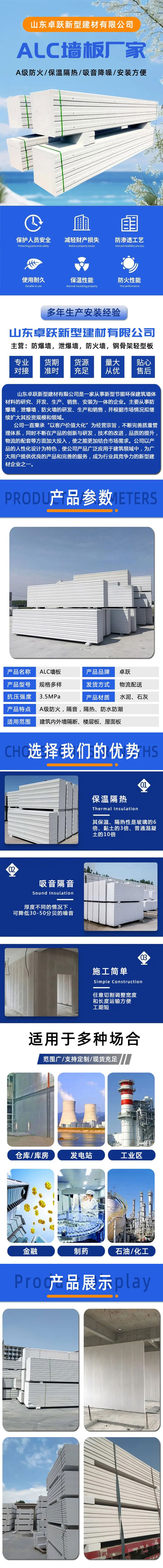 坊子装配式轻质隔墙板 alc条板 商场分室隔断 建筑内外墙专用